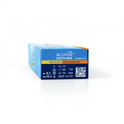 Model ACUVUE OASYS MAX 1-Day Multifocal for Astigmatism wykorzystuje zoptymalizowaną strefę optyczną, umożliwiającą wyraźne widzenie z bliska, z daleka oraz na odległości pośrednie, szczególnie przydatną dla osób po 40. roku życia, które zaczynają odczuwać trudności w czytaniu lub przy korzystaniu z urządzeń cyfrowych. Dodatkowo soczewki posiadają technologię stabilizacji powiekami (ESD), która utrzymuje soczewkę w prawidłowej pozycji na oku, zapewniając stabilne widzenie nawet podczas mrugania czy aktywnego trybu życia.
